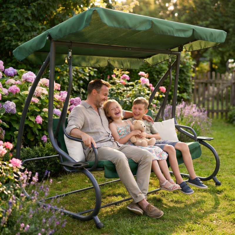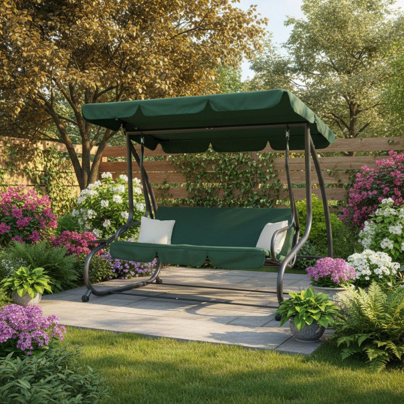 Zahradní houpačka 3-místná, zelená SPRINGOS LUNA
