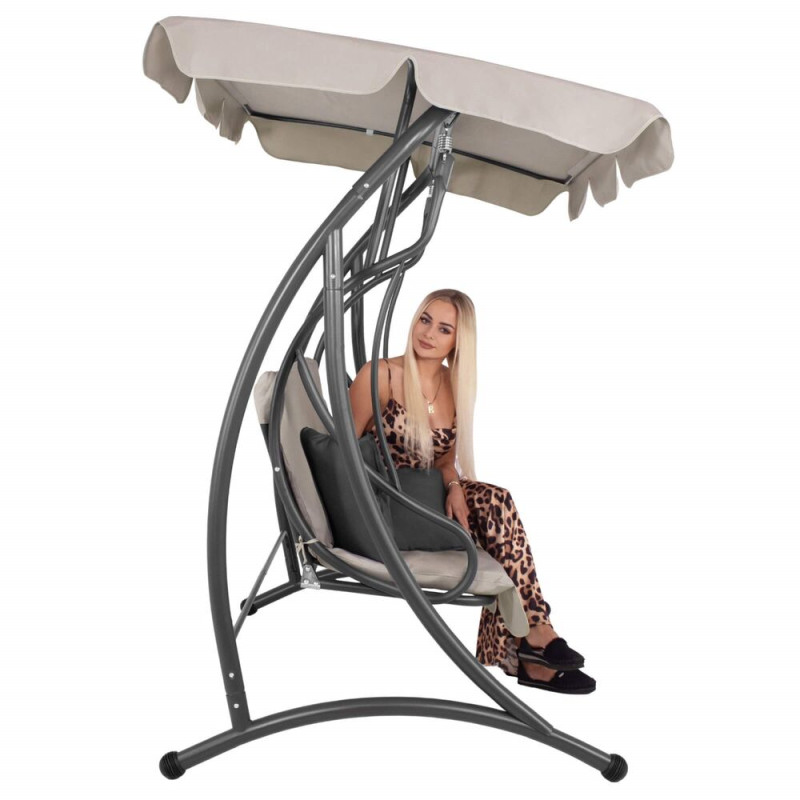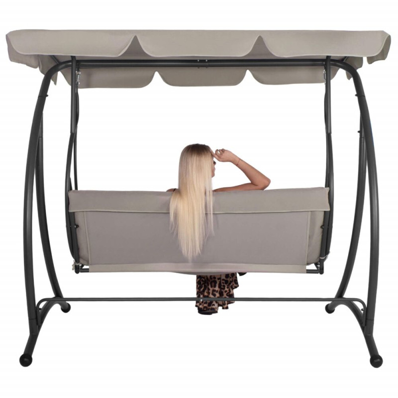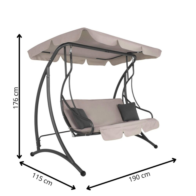 Komfortní zahradní houpačka pro klidné chvíle a ničím nerušený odpočinek na vaší zahradě. Nabízí místo až pro 3 osoby. Pevná kovová konstrukce. Pohodlný podsedák. Nastavitelná stříška. Voděodolné textilie s UV filtrem. Protiskluzové konce nohou.