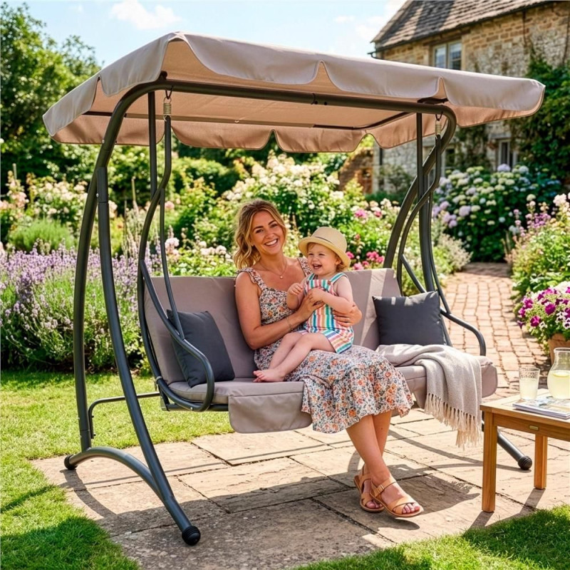 Zahradní houpačka pro 3 osoby SPRINGOS DEIZY GS0031 béžová nabízí prostorné a komfortní sezení pro více osob. Díky měkkému sedáku a polštářům si užijete maximální pohodlí při relaxaci na zahradě nebo terase.