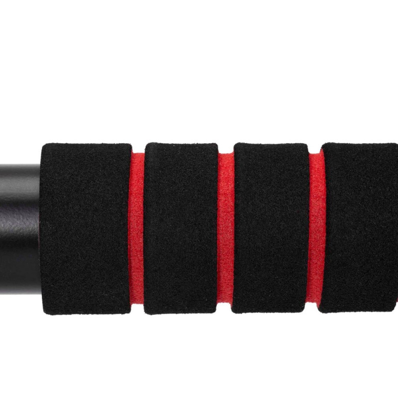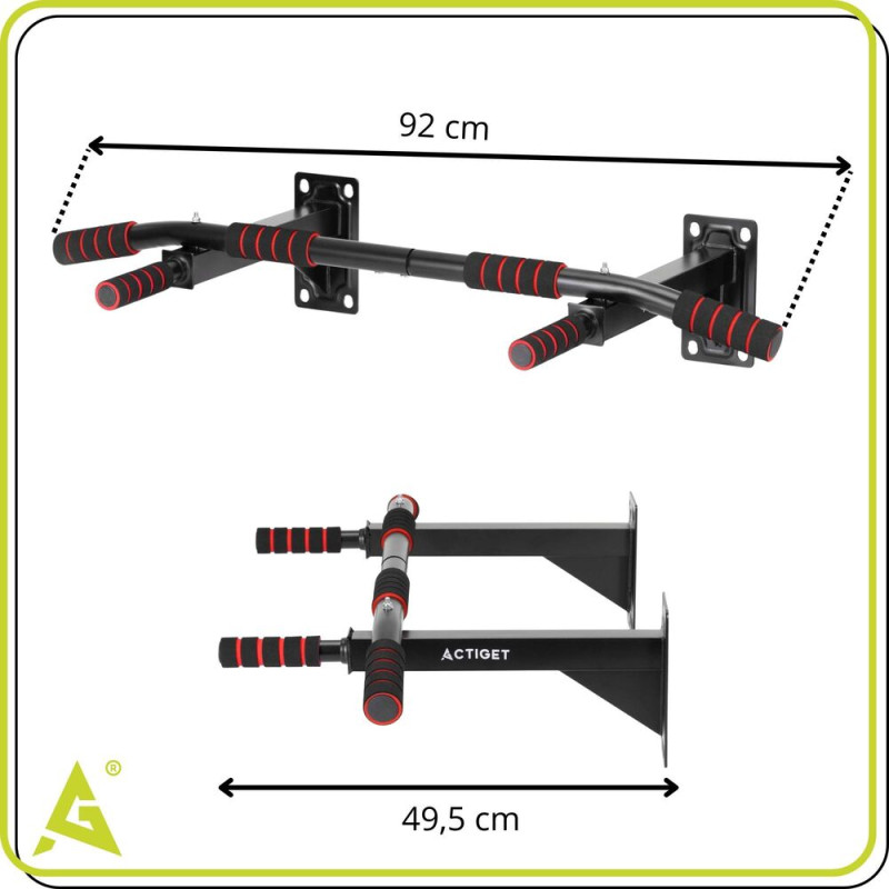 Základem je masivní ocelová konstrukce s výztuhou, která zajišťuje vysokou pevnost, stabilitu a dlouhou životnost. Rukojeti z měkčené pěny poskytují pohodlný a bezpečný úchop i při intenzivním tréninku. Součástí balení je uchycovací materiál, který umožňuje pevnou montáž na zeď. Praktické rozměry 92x49,5 cm zajišťují dostatek prostoru pro komfortní cvičení i v domácích podmínkách.