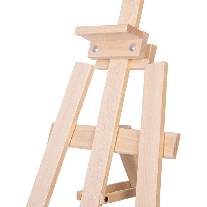 Stojan nabízí plně nastavitelnou výšku a sklon, což umožňuje jeho snadné přizpůsobení individuálním potřebám. Tento flexibilní mechanismus zaručuje pohodlí při malování vsedě i vestoje a je vhodný pro různé velikosti pláten. Díky kvalitnímu zpracování je manipulace se stojanem jednoduchá a rychlá, což šetří čas a energii při přípravě na práci.