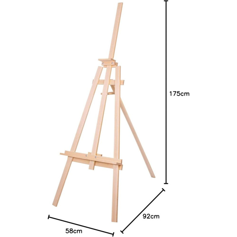 Malířský stojan o výšce 175 cm je ideálním pomocníkem pro malování i vystavování pláten. Robustní dřevěná konstrukce zajišťuje vysokou stabilitu a spolehlivost. Díky nastavitelné výšce a sklonu se snadno přizpůsobí různým potřebám. Je vhodný jak pro začátečníky, tak pro zkušené umělce, kteří ocení jeho kvalitu a praktičnost.