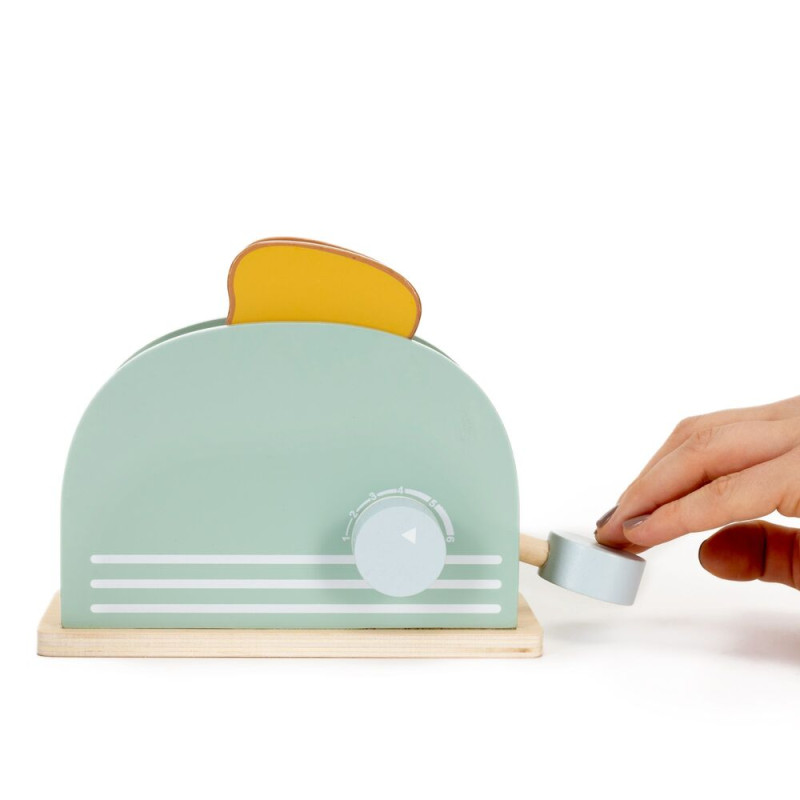 Dřevěná hračka pro přípravu chutné snídaně, která podporuje učení formou napodobování a kreativní hru. Sendvičovač / toustovač je vyroben z přírodního, hladce broušeného dřeva, 100% bez BPA a má odolné provedení vhodné pro děti. Realistické detaily, cvakací knoflík s nastavením teploty a barevné doplňky jako chléb, máslo, sýr a vejce umožňují připravit různé snídaňové kombinace. Celkem 9 interaktivních prvků, vhodné pro děti od 3 let.
