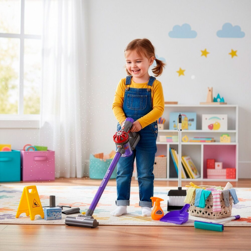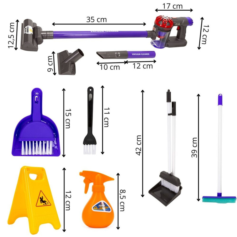 Zábavná a zároveň edukativní sada úklidových pomůcek, která dětem umožní učit se formou napodobování dospělých. Obsahuje plně funkční nástroje na vysávání, zametání i vytírání, včetně tyčového vysavače na baterie. Bezpečné provedení, certifikované materiály a dostatek prvků pro kreativní hru podporují samostatnost, zručnost i smysl pro pořádek. Ideální pro děti od 3 let.
