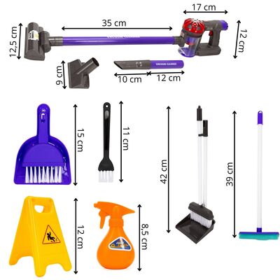 Úklidová sada pro děti 10 ks SPRINGOS KG0043 je ideální hračkou pro malé pomocníky, kteří rádi napodobují dospělé při každodenních činnostech. Sada obsahuje kompletní vybavení na vysávání, zametání i vytírání, díky čemuž si děti mohou hrát na skutečný úklid. Jednotlivé prvky jsou plně funkční a přizpůsobené dětským rukám, což podporuje realistickou a zábavnou hru.