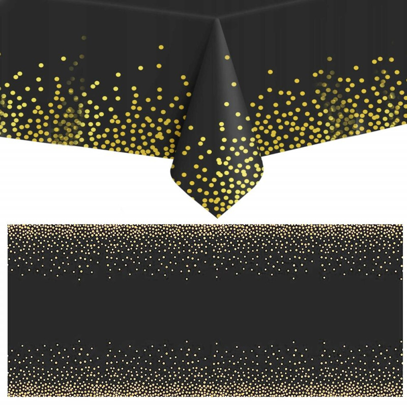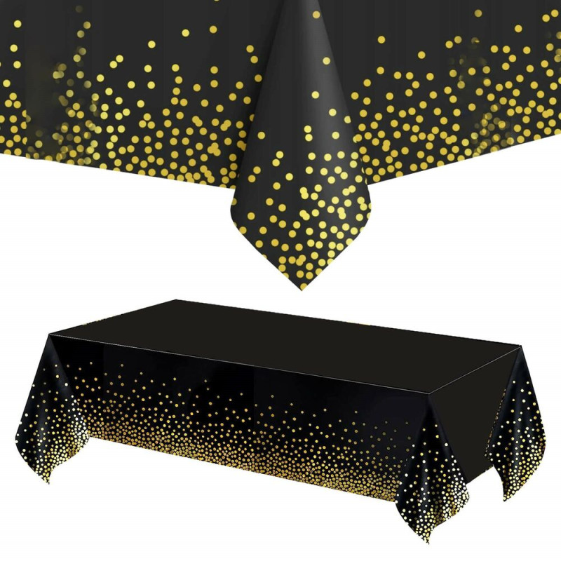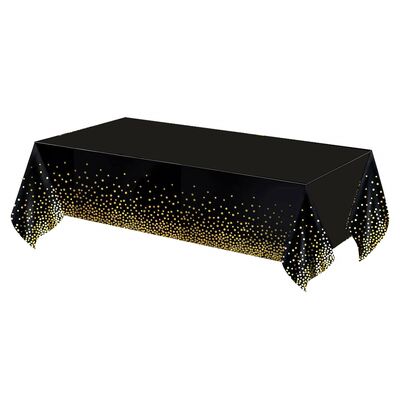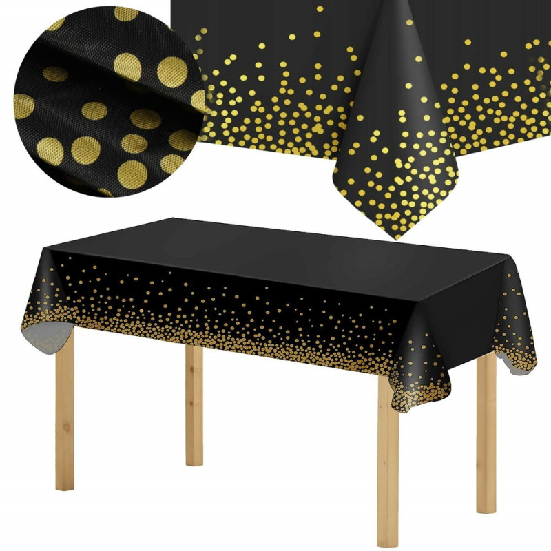 Praktický ubrus na stůl je ideální ochranou při každodenním používání i slavnostních příležitostech. Voděodolný materiál PEVA účinně chrání povrch stolu před zašpiněním a skvrnami a je odolný proti polití. Elegantní černé provedení se zlatými tečkami dodá stolu stylový vzhled. Díky rozměrům 272 × 137 cm je vhodný pro větší stoly doma i na společenské akce.