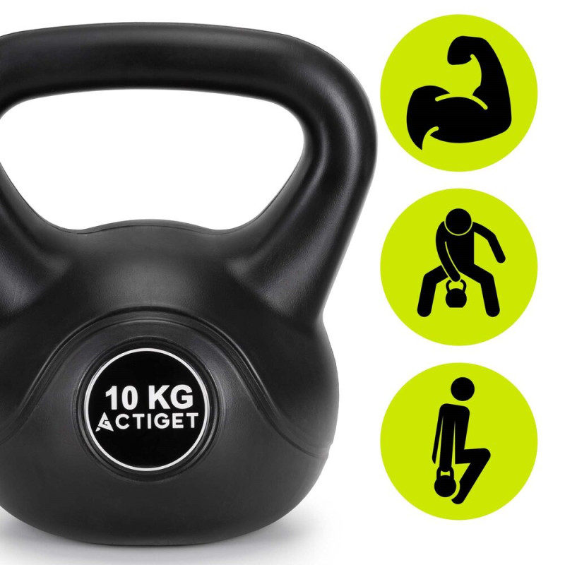 Kettlebell 10 kg ACTIGET ACT0083 je navržen pro začátečníky i pokročilé cvičence, kteří hledají spolehlivé a odolné vybavení. Díky kompozitnímu složení a tvrzenému ABS plášti je velmi odolný vůči nárazům i dlouhodobému používání. Vnitřní cementová výplň zajišťuje stabilní tvar a dlouhou životnost, takže je vhodný jak do domácí posilovny, tak do fitness centra.