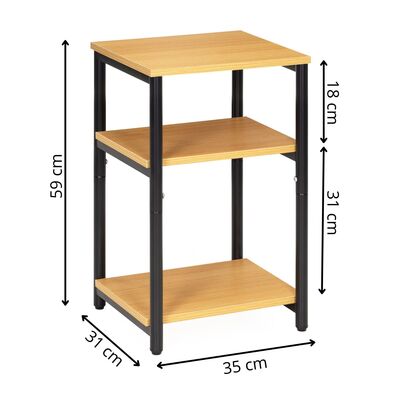 Stylový doplněk do ložnice ve světle hnědém provedení s kontrastní kovovou konstrukcí vytváří pevné a přehledné místo pro každodenní odkládání. Tři otevřené úrovně poskytují prostor pro knihu, telefon, lampičku i dekorace. Díky kompaktním rozměrům se hodí i k menším postelím a přirozeně zapadne do moderního interiéru. Rozměry: 59x35x31 cm.
