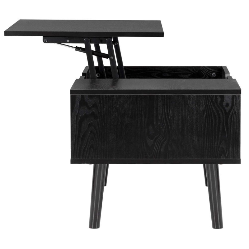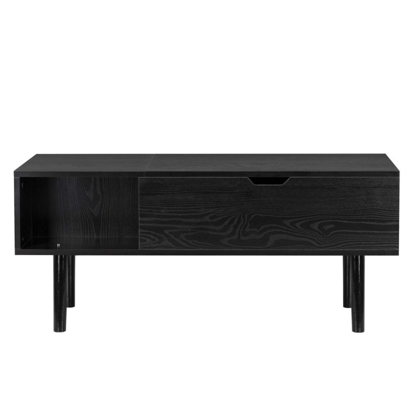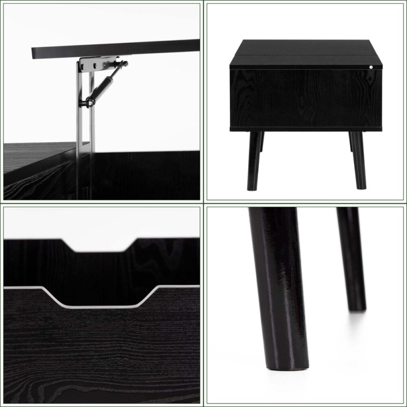 Moderní konferenční stolek v elegantním černém provedení s praktickým úložným prostorem a zvedací horní deskou. Nabízí pohodlné využití při práci, servírování i relaxaci. Stabilní konstrukce a čisté linie z něj dělají stylový doplněk do obývacího pokoje, který spojuje funkčnost s nadčasovým vzhledem.