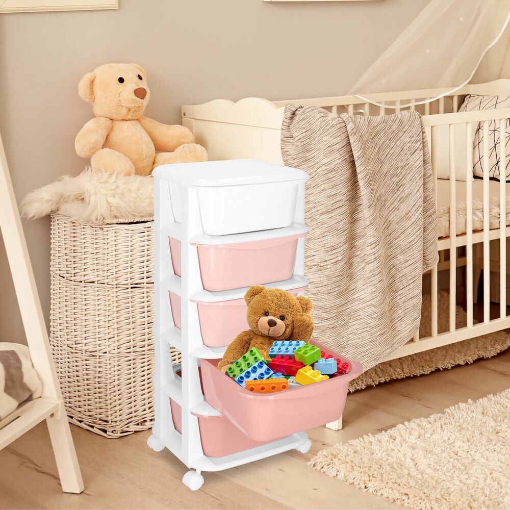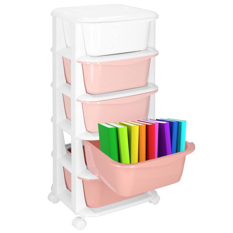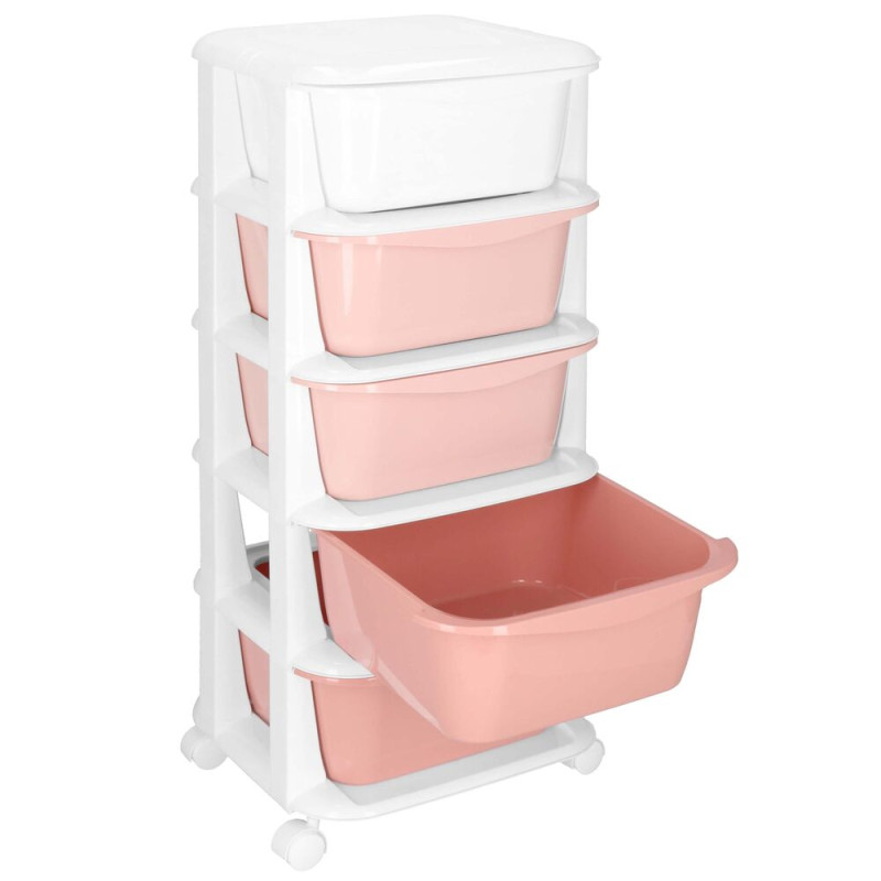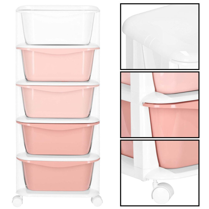 Skříňka na kolečkách 5 zásuvek SPRINGOS HA0211 je praktické řešení pro ukládání hraček, kancelářských potřeb nebo domácích drobností. Díky pěti zásuvkám nabízí dostatek prostoru a lehká plastová konstrukce se snadno udržuje. Bezpečný provoz zajišťují zaoblené hrany a celková nosnost až 25 kg, která umožňuje pohodlně ukládat různé předměty.