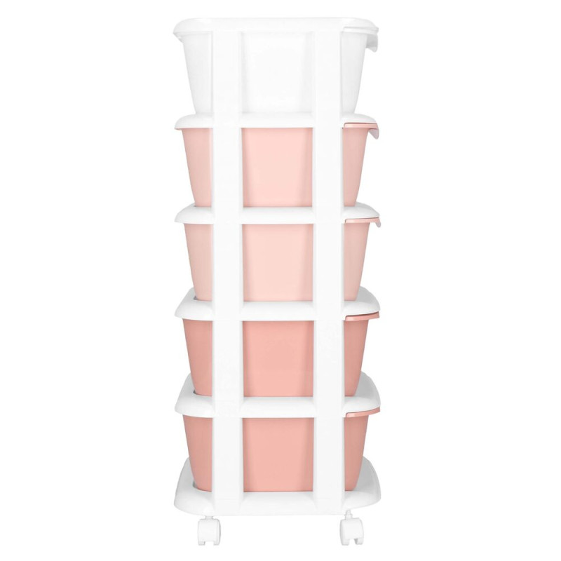 Praktický zásuvkový kontejner s pěti zásuvkami nabízí úložný prostor s celkovou nosností až 25 kg. Díky kolečkům je snadno přemístitelný, plastové provedení se zaoblenými hranami zajišťuje bezpečné používání. Zásuvky mají pohodlné úchyty a zámky proti vypadnutí. Kontejner se zásuvkami je vhodný pro organizaci domácnosti a dodáván v provedení umožňujícím rychlé a snadné sestavení.