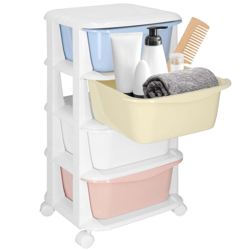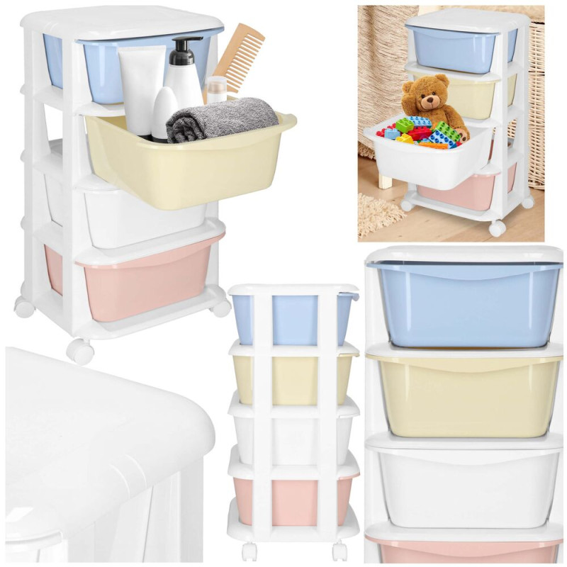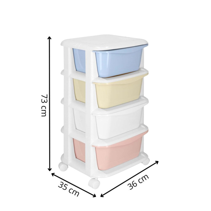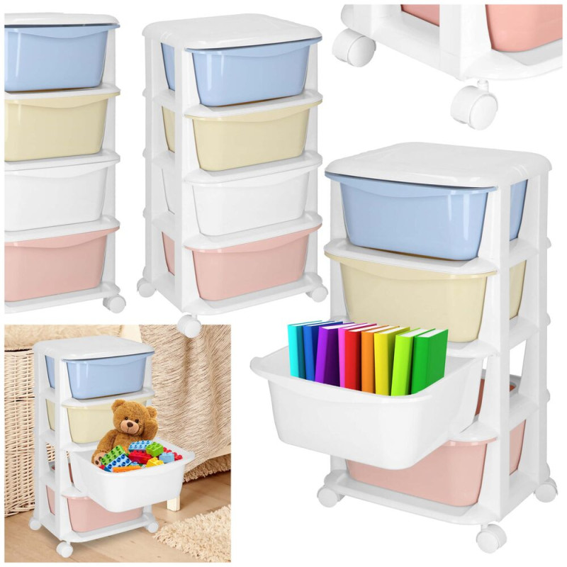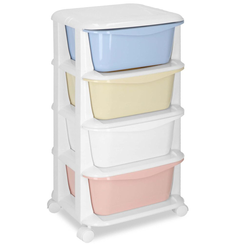 Skříňka na kolečkách 4 zásuvky je praktické úložné řešení pro domácnost, kancelář či dětský pokoj. Díky čtyřem prostorným zásuvkám poskytuje dostatek místa pro hračky, drobnosti nebo dokumenty. Konstrukce z odolného plastu nabízí bezpečné zaoblené hrany a celkovou nosnost až 20 kg, což zajišťuje dlouhou životnost i pohodlné používání.
