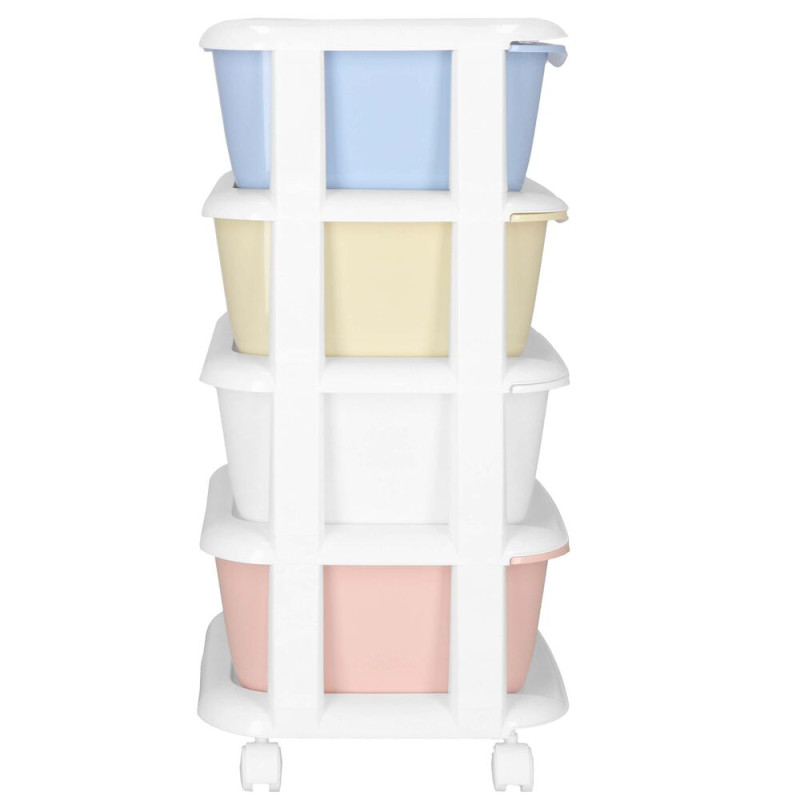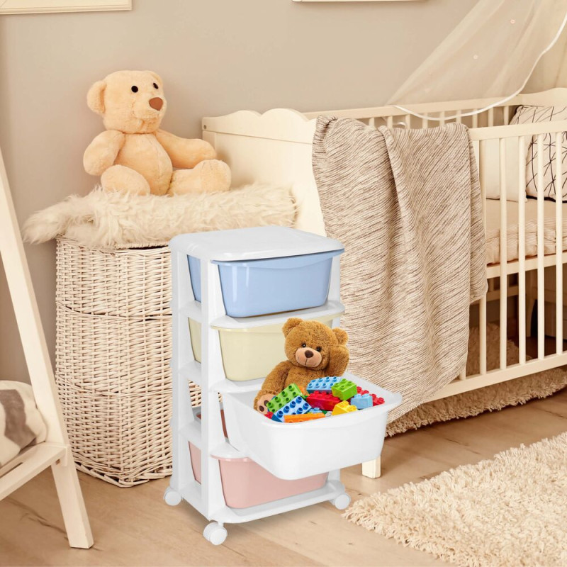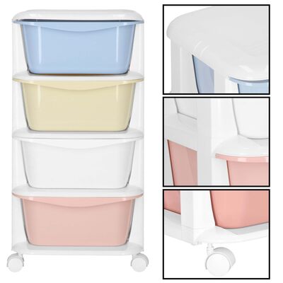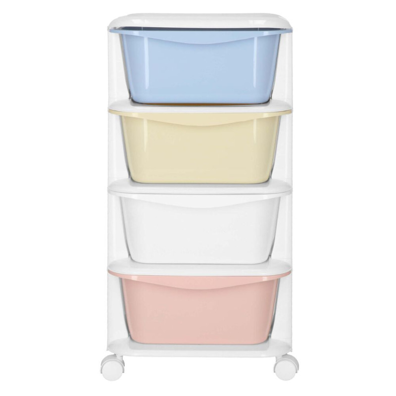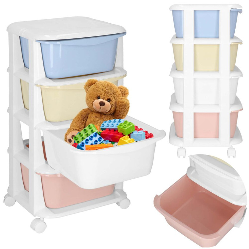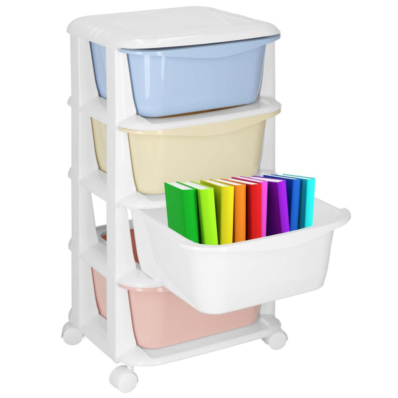 Skříňka na kolečkách 4 zásuvky je praktické úložné řešení pro domácnost, kancelář či dětský pokoj. Díky čtyřem prostorným zásuvkám poskytuje dostatek místa pro hračky, drobnosti nebo dokumenty. Konstrukce z odolného plastu nabízí bezpečné zaoblené hrany a celkovou nosnost až 20 kg, což zajišťuje dlouhou životnost i pohodlné používání.