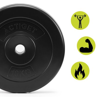 Základní údaje: Značka: Actiget®. Univerzální řada. Materiál: vnější nátěr z PP, výplň – cement. Barva: černá. Hmotnost: 10 kg. Rozměry: Celkový průměr: 30,5 cm. Tloušťka: 6 cm. Vnitřní průměr: 3,1 cm. Další informace: Produkt je opatřen logem Actiget®.