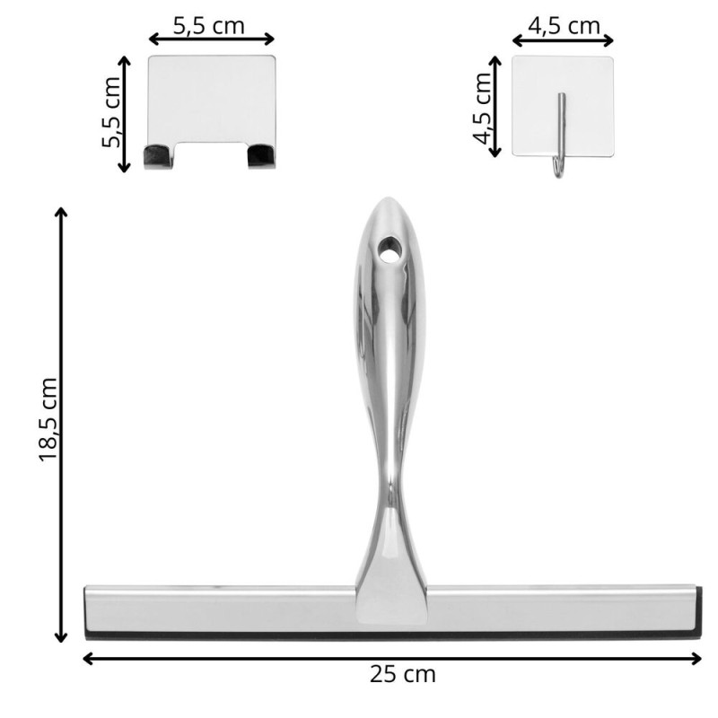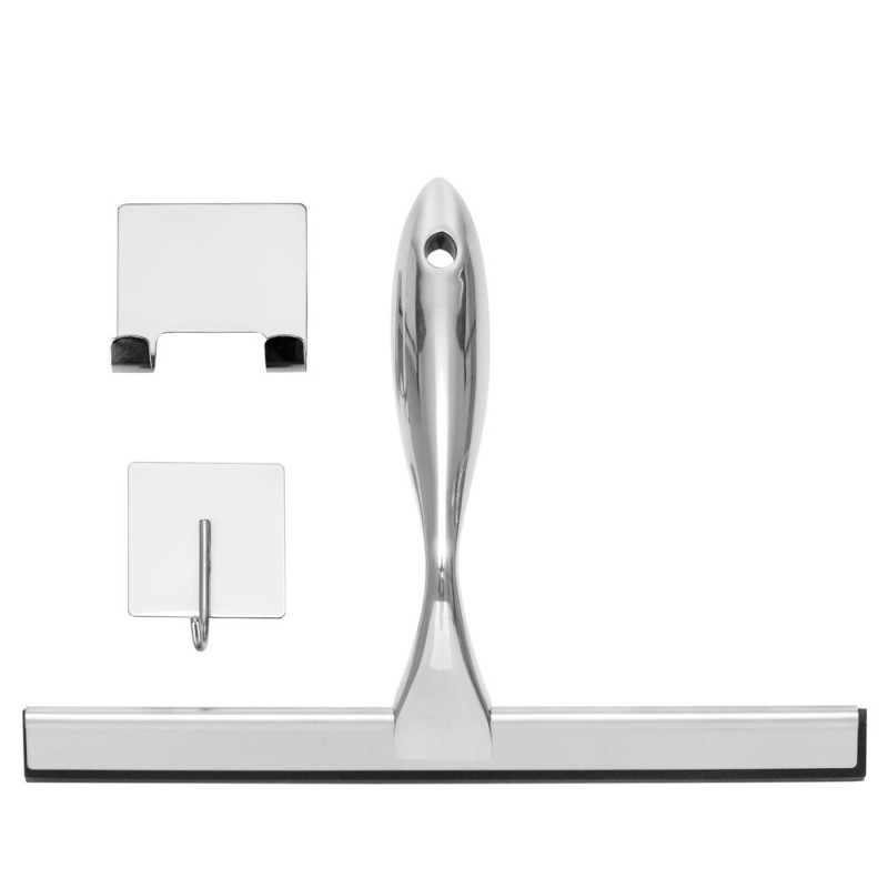 Praktická koupelnová stěrka vhodná jako stěrka do sprchy i stěrka do sprchového koutu. Hladká stírací hrana zajistí účinné setření vody bez šmouh a pomáhá omezit usazování vodního kamene. Ergonomická rukojeť umožňuje pohodlný úchop a snadnou manipulaci. Přísavky na uchycení umožní praktické zavěšení přímo v koupelně, aby byla vždy po ruce. Elegantní nerezové provedení doplní moderní interiér. Rozměry 25x18,5 cm.