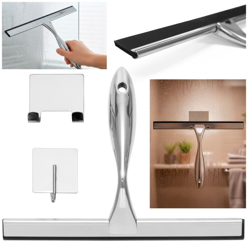 Zajistí rychlé a pohodlné setření vody ze sprchových koutů, skel i obkladů a pomůže udržet koupelnu čistou a bez šmouh. Elegantní kovové provedení působí moderně a zároveň je praktické pro každodenní používání. Pohodlná rukojeť dobře padne do ruky a usnadňuje manipulaci. Díky přiloženým úchytům ji lze snadno zavěsit na zeď, takže je vždy po ruce a nezabírá místo.
