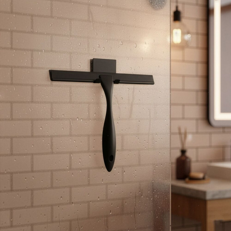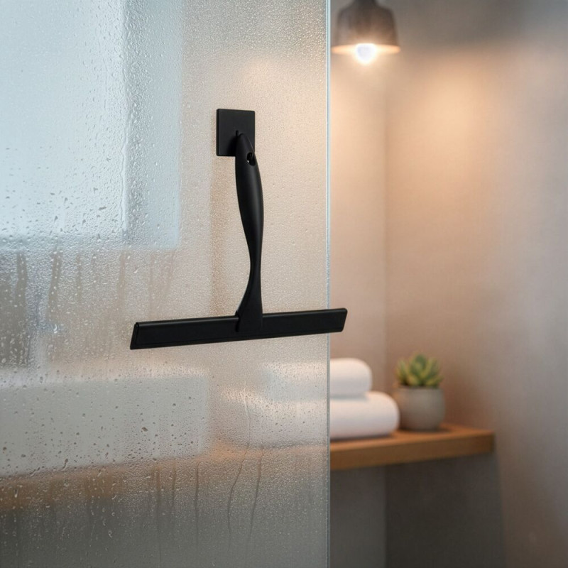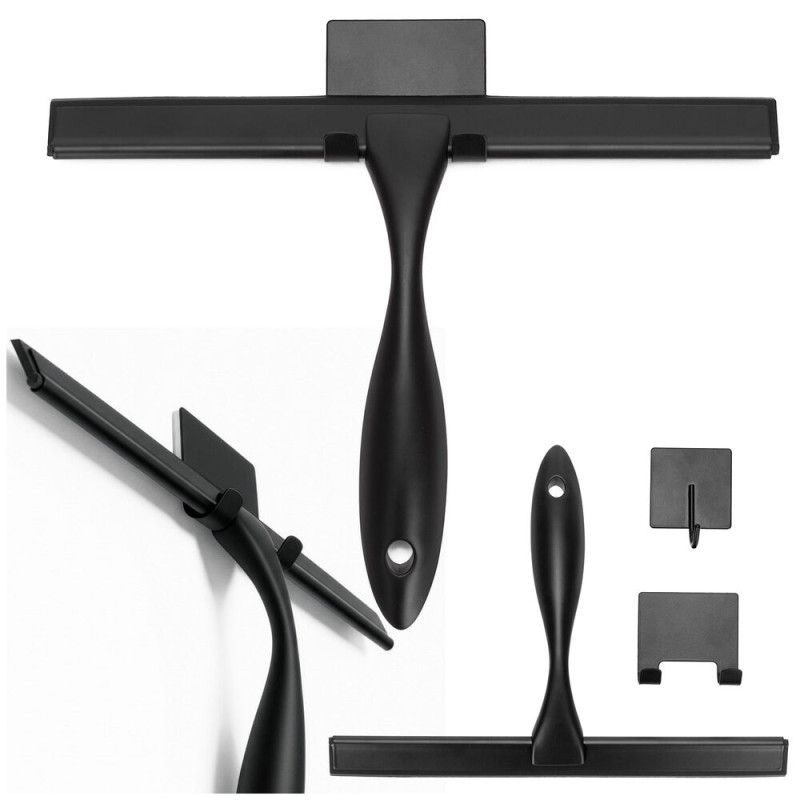 Praktická koupelnová stěrka vhodná jako stěrka do sprchy i stěrka do sprchového koutu. Hladká stírací hrana zajistí účinné setření vody bez šmouh a pomáhá omezit usazování vodního kamene. Ergonomická rukojeť umožňuje pohodlný úchop a snadnou manipulaci. Přísavky na uchycení umožní praktické zavěšení přímo v koupelně, aby byla vždy po ruce. Elegantní černé provedení doplní moderní interiér. Rozměry 25x18,5 cm.