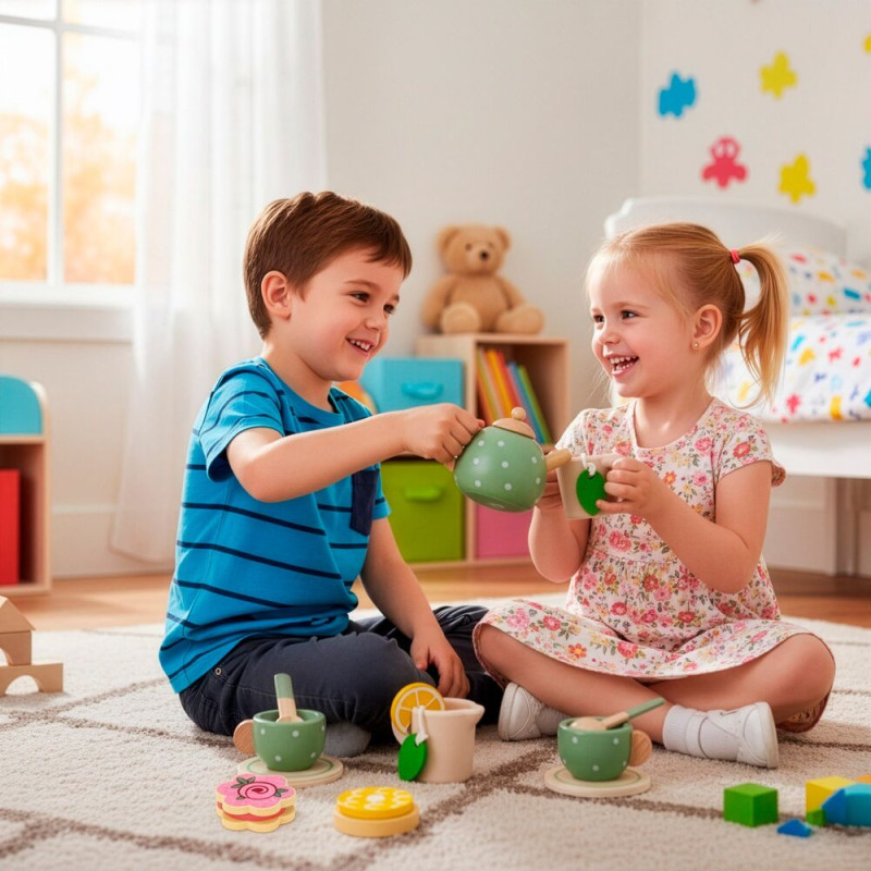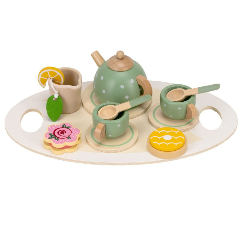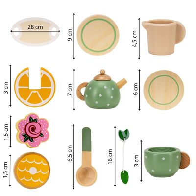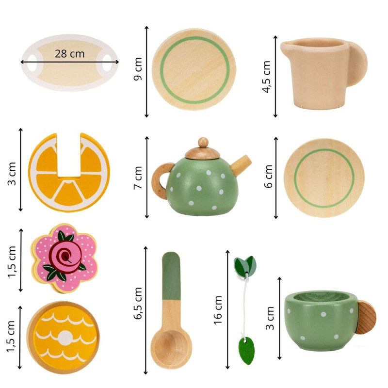 - Dřevěná snídaňová/čajová sada pro děti s realistickými doplňky