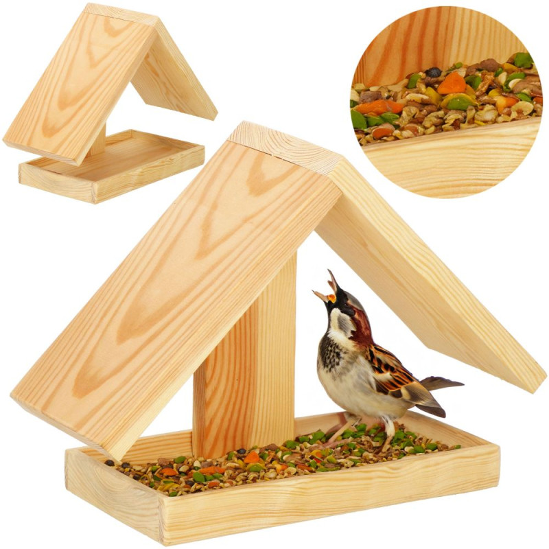 Ptačí krmítko z odolného impregnovaného dřeva vhodné k zavěšení nebo postavení. Praktický tvar s rozměry 32x24x14 cm poskytuje bezpečné místo pro krmení ptáčků, jako jsou sýkorky, a zároveň odolává nepříznivému počasí. Skvělý doplněk do zahrady, na balkon nebo terasu!