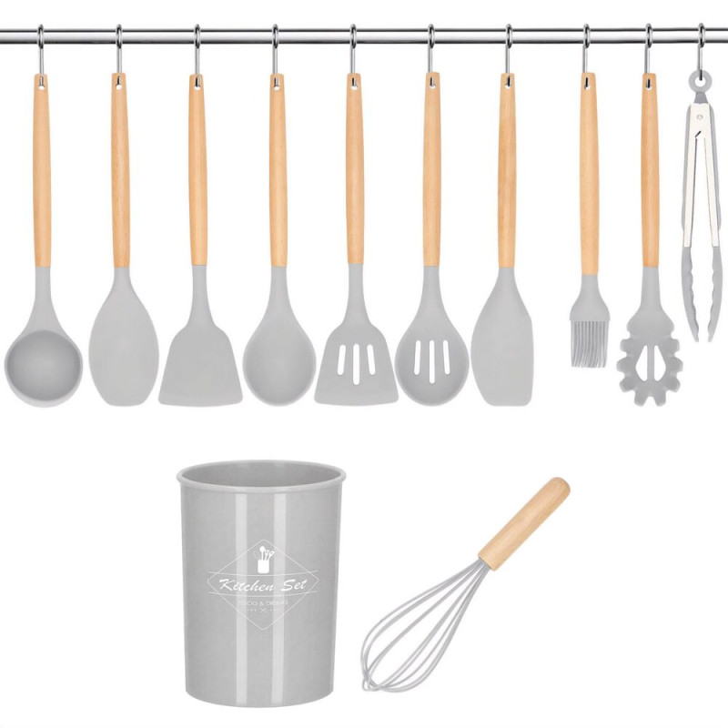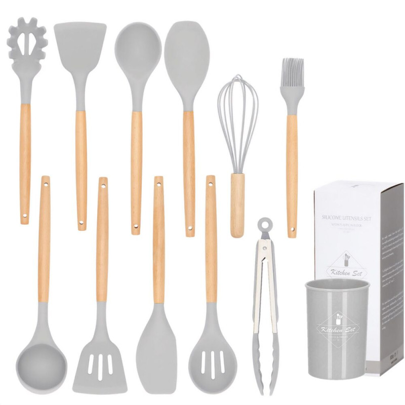 Sada kuchyňského náčiní ve stojanu, set 12ks, světle šedá SPRINGOS CHEF