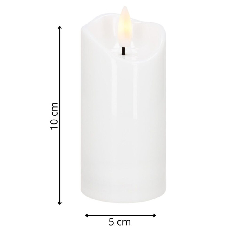 LED svíčka s pohyblivým plamenem 10 cm vnese do vašeho domova příjemnou, hřejivou atmosféru. Má teplé žluté světlo a realistický efekt plamene. Je vybavena černým knotem, který ještě více umocňuje dojem skutečné hořící svíčky. Tento model je skvělou volbou pro ty, kteří chtějí kouzlo svíček bez rizik – nezahřívá se, nekouří a je maximálně bezpečná na provoz. Díky napájení na 2× AA baterie ji můžete umístit kamkoliv bez nutnosti zásuvky.