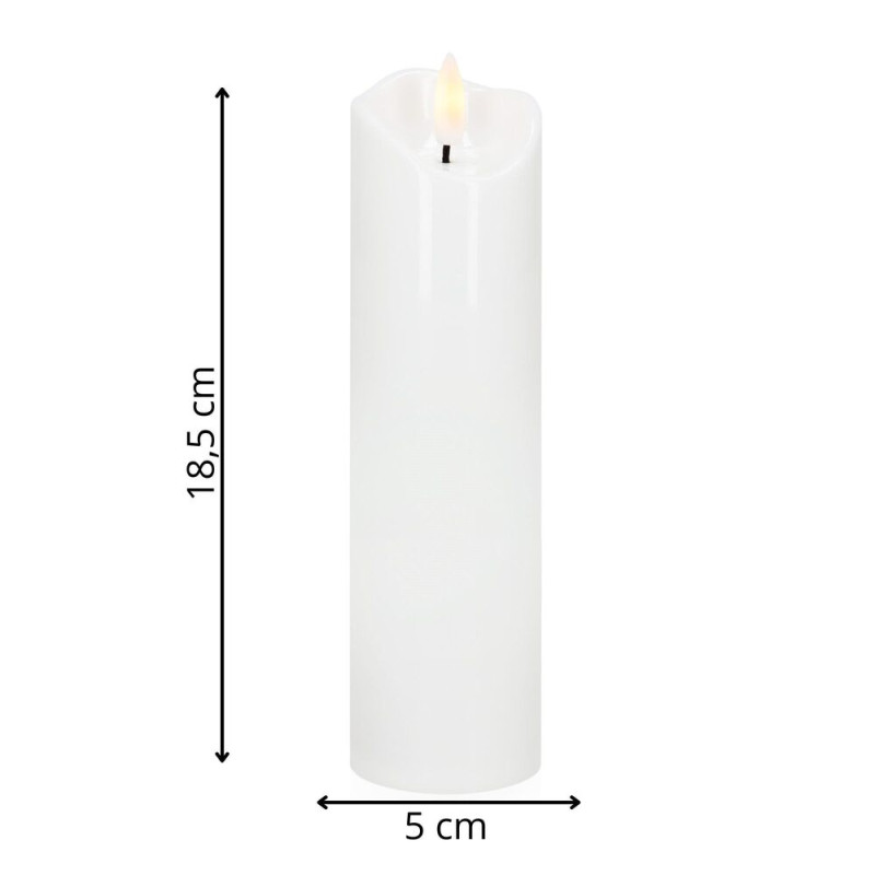 LED svíčka s pohyblivým plamenem 18,5 cm vnese do vašeho domova příjemnou, hřejivou atmosféru. Má teplé žluté světlo a realistický efekt plamene. Je vybavena černým knotem, který ještě více umocňuje dojem skutečné hořící svíčky. Tento model je skvělou volbou pro ty, kteří chtějí kouzlo svíček bez rizik – nezahřívá se, nekouří a je maximálně bezpečná na provoz. Díky napájení na 2× AA baterie ji můžete umístit kamkoliv bez nutnosti zásuvky.