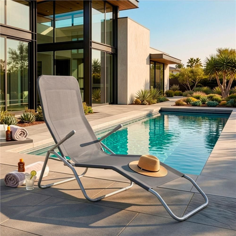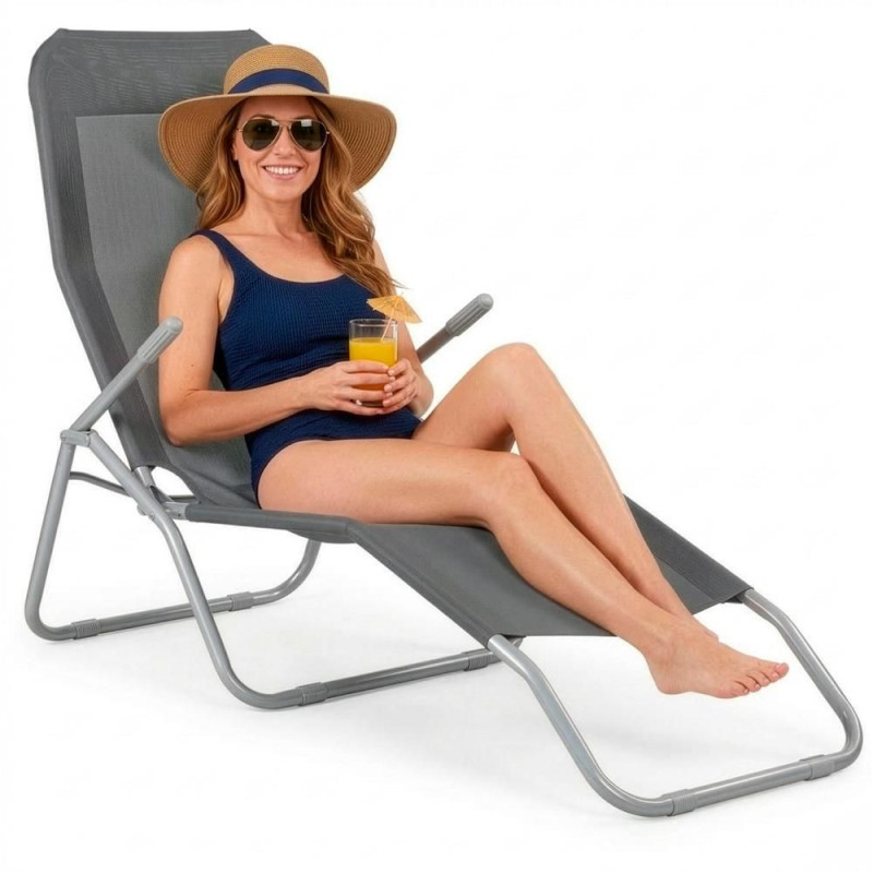 Pohodlné skládací lehátko s kovovou konstrukcí a prodyšným výpletem. Umožňuje relaxovat jak v sedě, tak i v leže. Pro větší komfort vybavené područkami. Nosnost 120 kg.