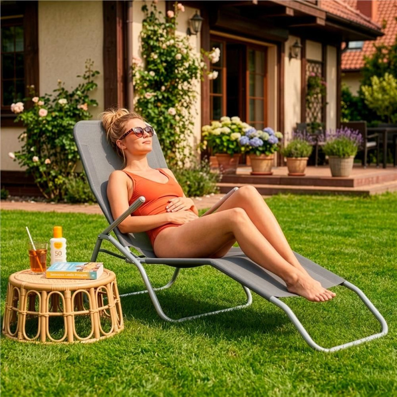 Zahradní lehátko SPRINGOS SIESTA šedé