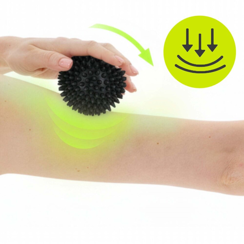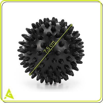 Masážní míček pro uvolnění svalového napětí a každodenní regeneraci. Tvrdé výstupky pro účinnou bodovou masáž. Pomáhá zlepšit prokrvení a snížit ztuhlost a únavu. Průměr 7,5 cm. Odolný PVC materiál, který se nedeformuje. Vhodný na krk, záda, nohy, ruce i další části těla.