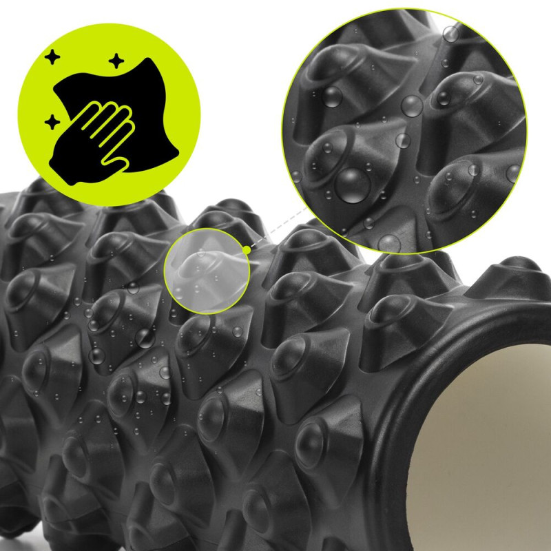 Masážní válec se speciálními nopy z EVA pěny určený pro samomasáž a regeneraci svalů po tréninku i během rekonvalescence. Vhodný na všechny svalové partie – krk, záda, hýždě i nohy. Tuhé jádro je ideální pro intenzivně trénující. Pomáhá snižovat svalové napětí, zlepšovat pohyblivost a urychlovat regeneraci. Rozměry 33×13 cm, síla pěny 2 cm, střední tvrdost 50° Shore A.