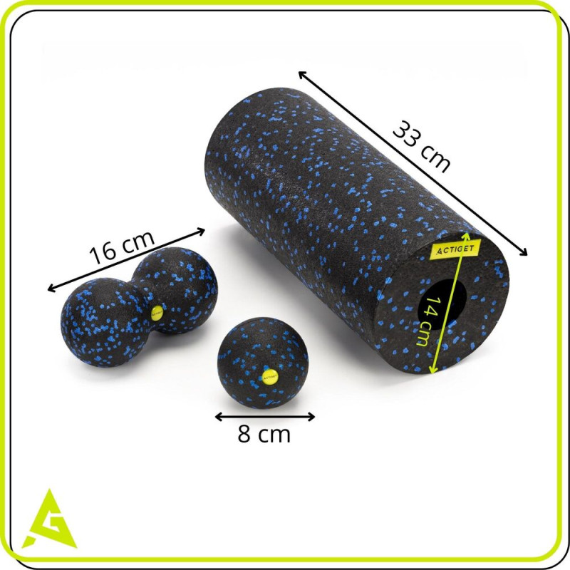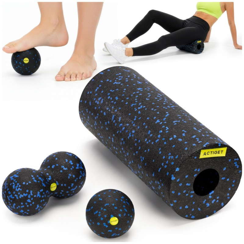 Sada tří pomůcek pro efektivní a bezbolestnou samomasáž namáhaných svalů. Umožňuje komplexní masáž všech svalových partií a je vhodná i pro každodenní intenzivní používání. Obsahuje hladký válec, dvojitý míček a jednoduchý míček z EPP pěny, které pomáhají uvolnit napětí a podpořit regeneraci. Součástí je textilní vak se stahovací šňůrkou pro uložení a přenášení.