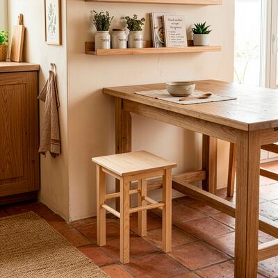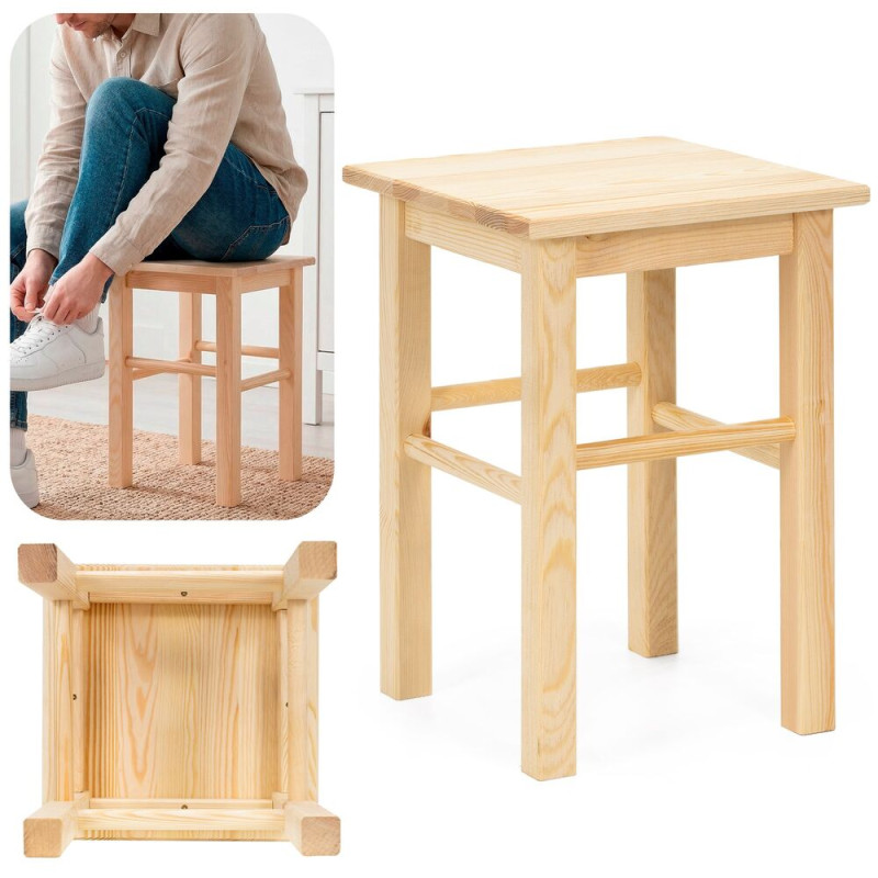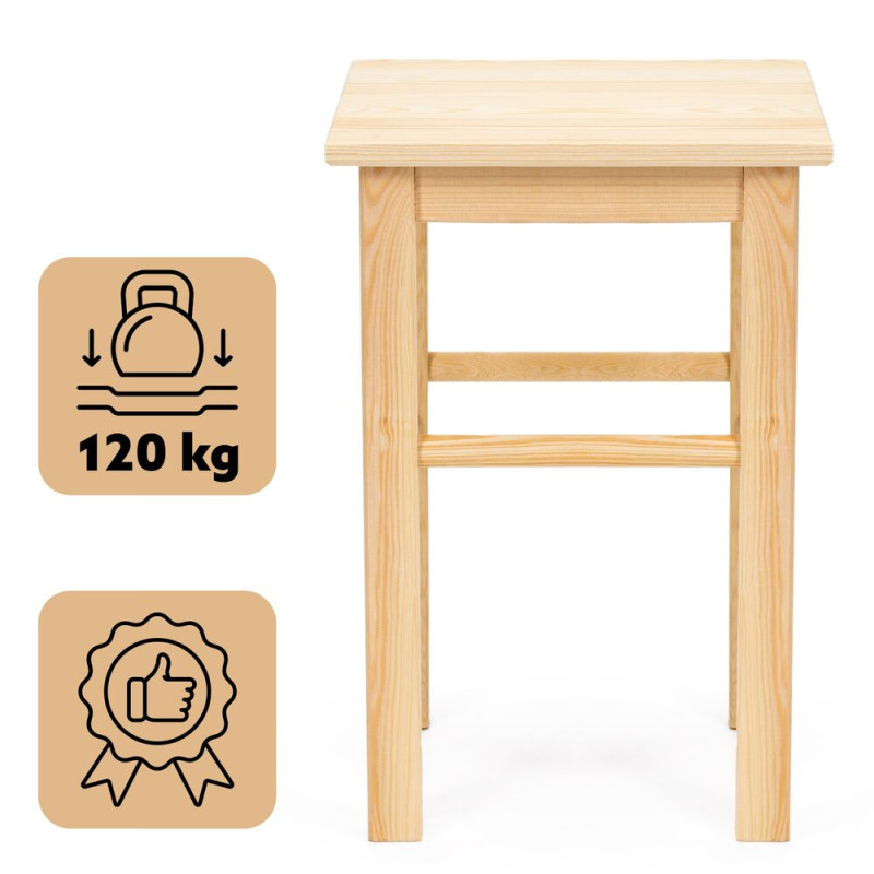 Dřevěná stolička se čtvercovým sedákem pro každodenní použití. Slouží k sezení, odkládání věcí nebo jako praktický pomocník v domácnosti. Nabízí stabilní konstrukci a pohodlný tvar sedáku. Vhodná do kuchyně, koupelny i dalších prostor.
