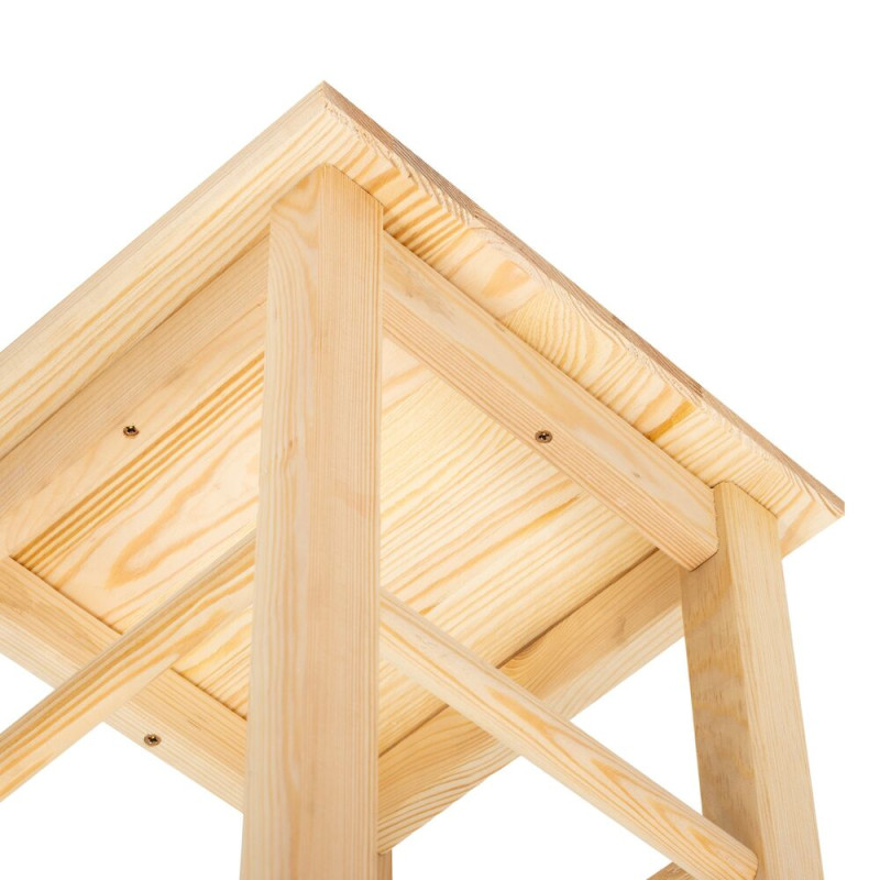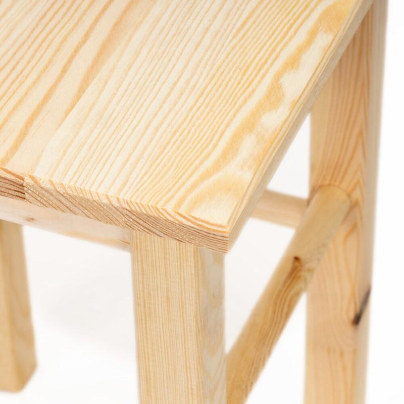 Stolička je vyrobena z kvalitního borovicového dřeva, které zajišťuje pevnost a dlouhou životnost. Tvarovaný sedák poskytuje vyšší komfort při sezení, zatímco stabilní konstrukce zaručuje bezpečné používání. Přírodní vzhled snadno zapadne do každého interiéru.