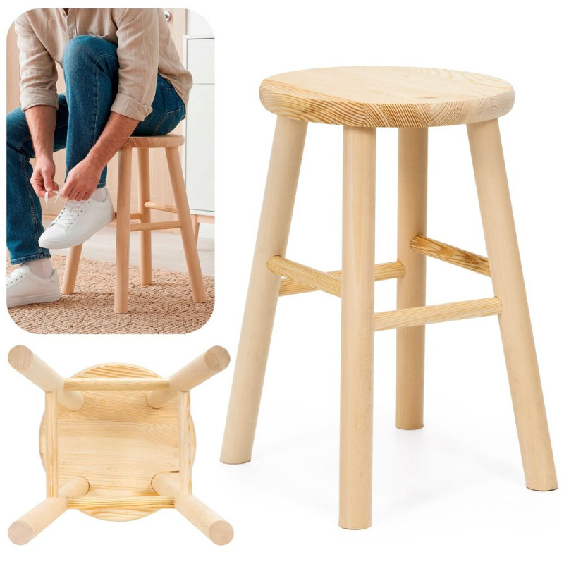 Dřevěná kulatá stolička pro každodenní použití v domácnosti. Slouží k sezení, odkládání věcí nebo jako praktický pomocník. Nabízí pevnou konstrukci a pohodlný tvar sedáku. Vhodná do kuchyně, koupelny i dalších prostor.