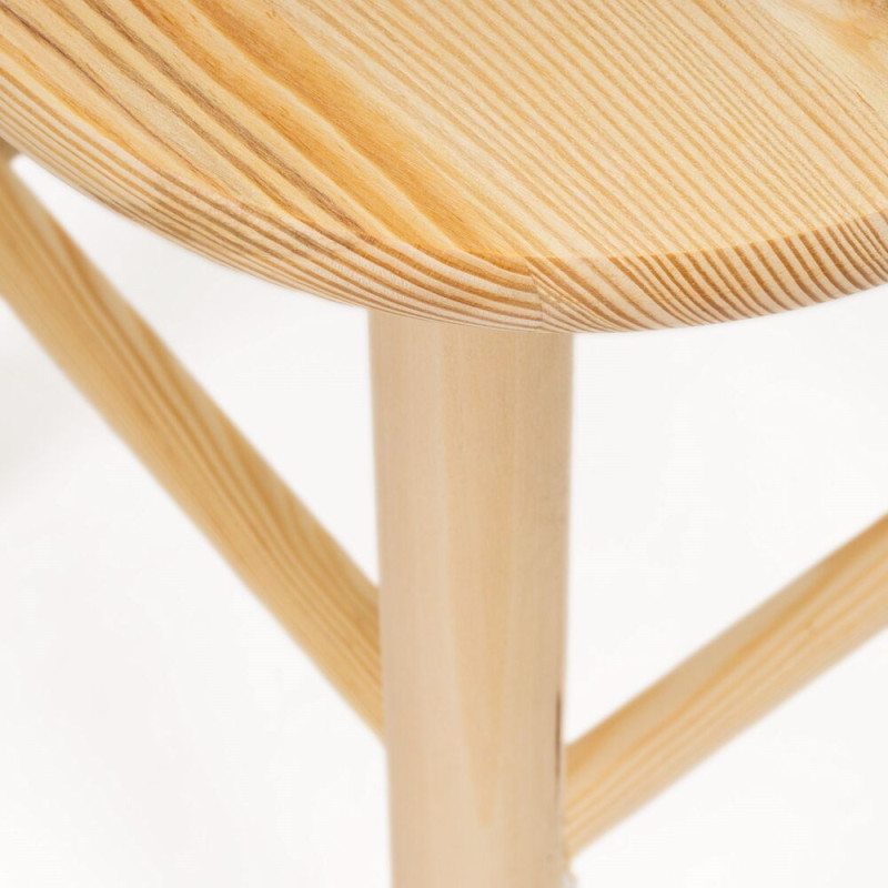 Stolička je vyrobena z kvalitního borovicového dřeva, které zajišťuje pevnost a dlouhou životnost. Tvarovaný sedák poskytuje vyšší komfort při sezení, zatímco stabilní konstrukce zaručuje bezpečné používání. Přírodní vzhled snadno zapadne do každého interiéru.