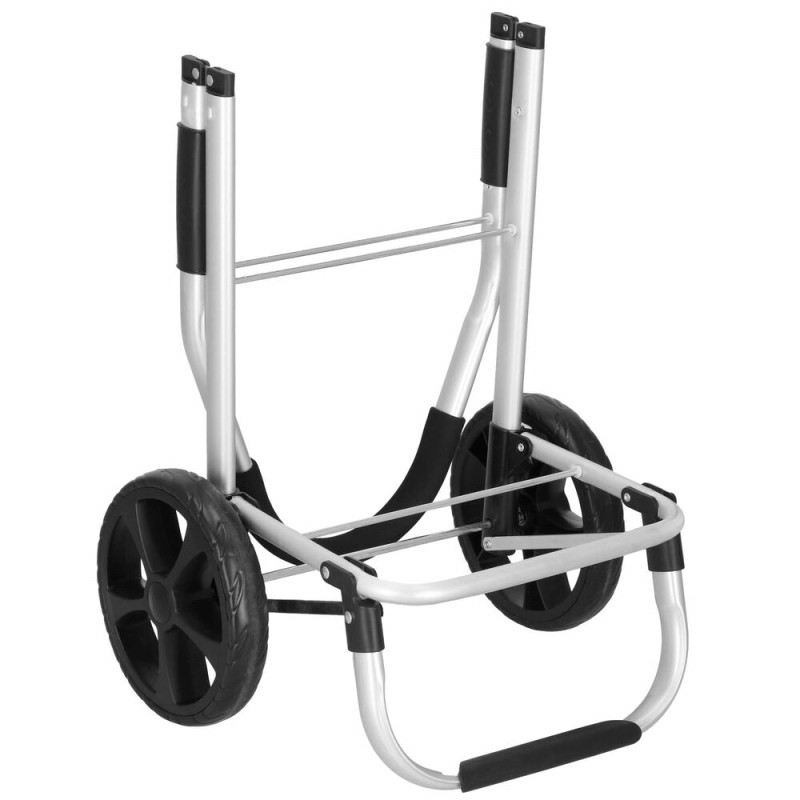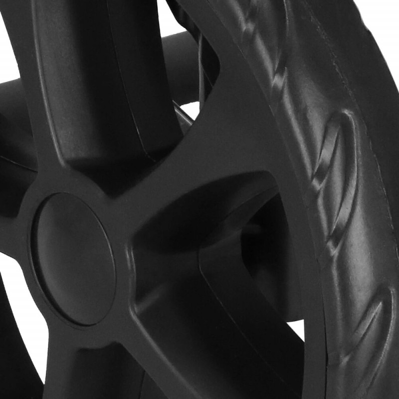 Velká pogumovaná kola umožňují hladkou a bezproblémovou jízdu i po nerovném terénu, což zvyšuje komfort při přepravě těžších nákladů.