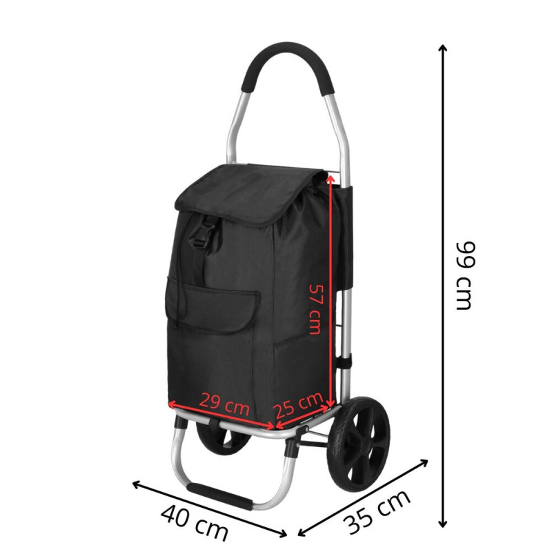 Skládací nákupní vozík s objemem až 42 litrů je nepostradatelným pomocníkem, který ulevuje svalům, kloubům i páteři. Lehká konstrukce, skládací rám a velká pogumovaná kola zajišťují snadnou jízdu i po nerovnostech. Látkovou tašku lze odepnout, rám složit naplocho. Pohodlná rukojeť, stabilita ve stoje a další 3 kapsy dělají z nákupní tašky na kolečkách praktického společníka.