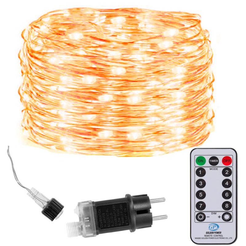 LED řetěz Nano - 100m, 1000LED, 8 funkcí, paměť, IP44, teplá bílá