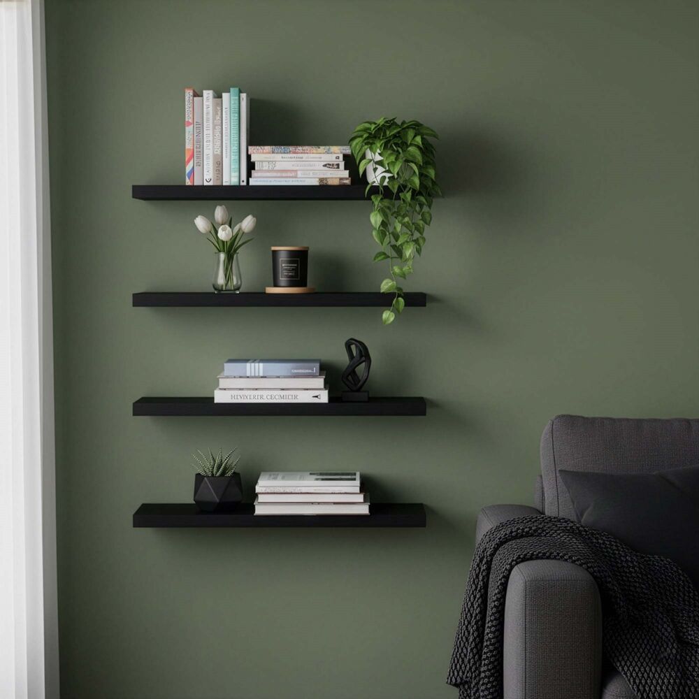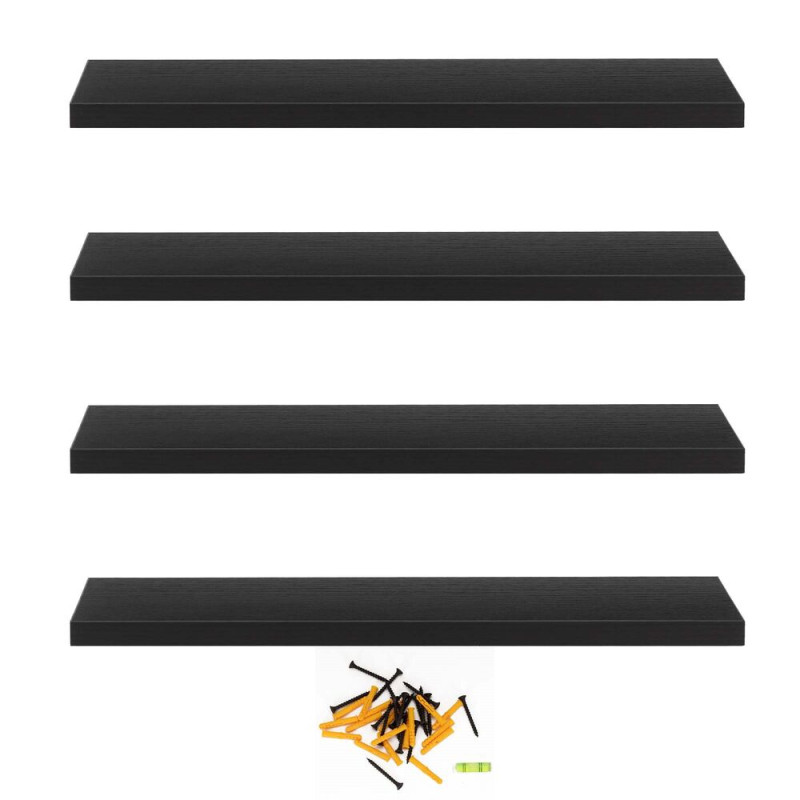Police na zeď sada 4 ks SPRINGOS HF0053 černé jsou stylovým a praktickým doplňkem každého moderního interiéru. Jejich moderní design, nadčasové černé provedení a čisté linie působí elegantně a umožňují snadné sladění s ostatním vybavením domácnosti. Díky své univerzálnosti jsou vhodné do obývacího pokoje, ložnice, pracovny i předsíně a skvěle poslouží k vystavení dekorací, knih, fotografií či květin.