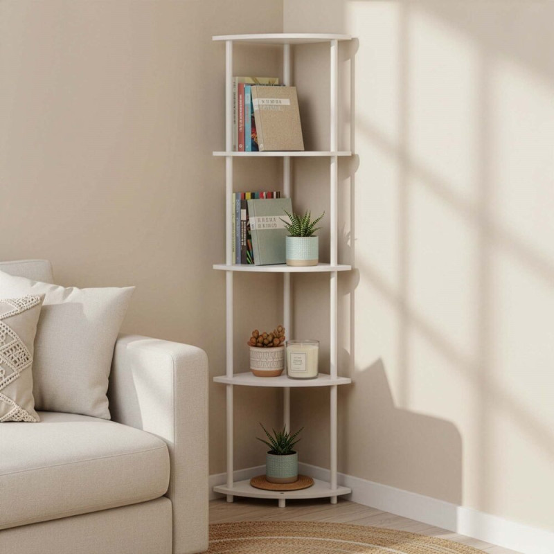 Rohová skříňka SPRINGOS HA7547 bílá je praktickým řešením pro efektivní využití rohového prostoru v bytě. Díky pěti policím nabízí dostatek místa pro knihy, dekorace, kosmetiku nebo drobnosti každodenní potřeby. Pevná kovová konstrukce doplněná odolnými policemi zajišťuje stabilitu, dlouhou životnost a celkovou nosnost až 20 kg. Čisté bílé provedení působí lehce a snadno zapadne do moderního i klasického interiéru.