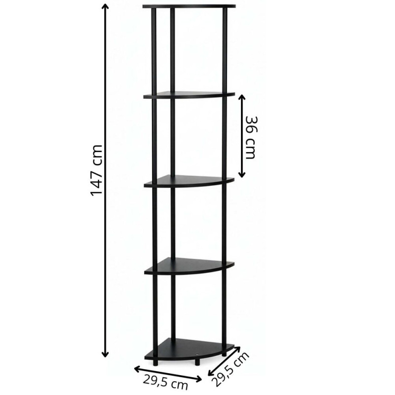 Elegantní řešení pro využití nevyužitého kouta v interiéru. Štíhlé provedení nabízí pět polic vhodných pro dekorace, knihy, rostliny i drobnosti každodenní potřeby. Stabilní konstrukce zajišťuje jisté postavení, zatímco tmavé provedení působí moderně a snadno se kombinuje s různými styly zařízení. Vhodná do ložnice, obývacího pokoje i pracovního koutu.