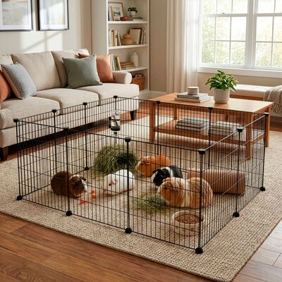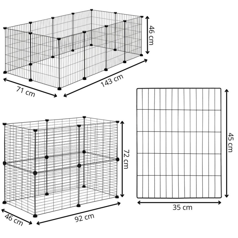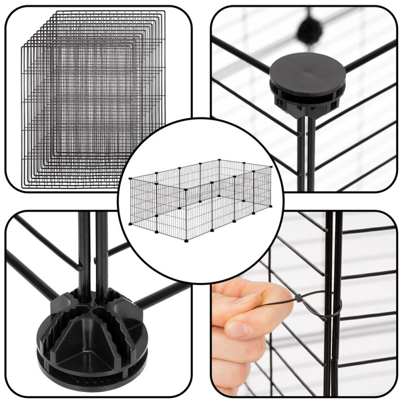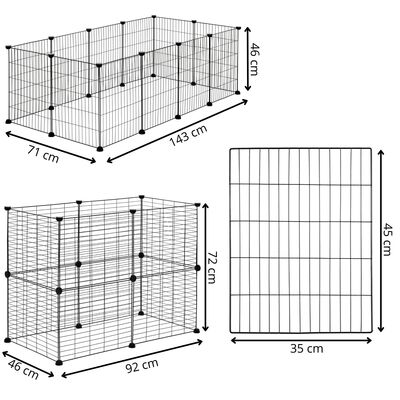 Skládací ohrádka pro malá domácí zvířata a hlodavce poskytuje bezpečný a přehledný prostor pro pohyb i odpočinek. Vytvořte otevřený a prostorný výběh s tímto plotem, kde se váš milý přítel může bavit a cítit se pohodlně. Odolný kovový materiál a pevné pletivo zajišťují stabilitu a dlouhou životnost. Jednoduché složení a variabilní uspořádání dle potřeby. Rozměry jednoho panelu: 25x45 cm (ŠxV).