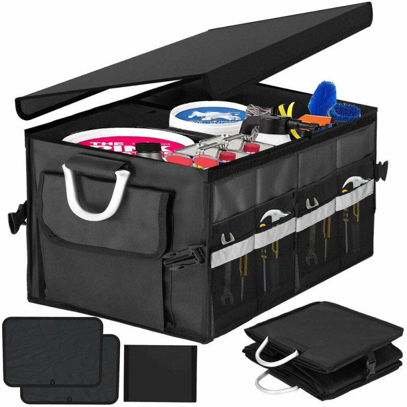 Praktický černý organizér do kufru auta pomůže udržet pořádek při každé jízdě. Díky dvěma hlavním přihrádkám, postranním síťovaným kapsám a kapse na suchý zip nabízí dostatek prostoru pro nákupy, nářadí i cestovní doplňky. Má modulární provedení s možností rozdělení vnitřního prostoru a skládací design pro snadné uložení. Zesílené stěny, pevné rukojeti a spodní suché zipy zajišťují stabilitu během jízdy.