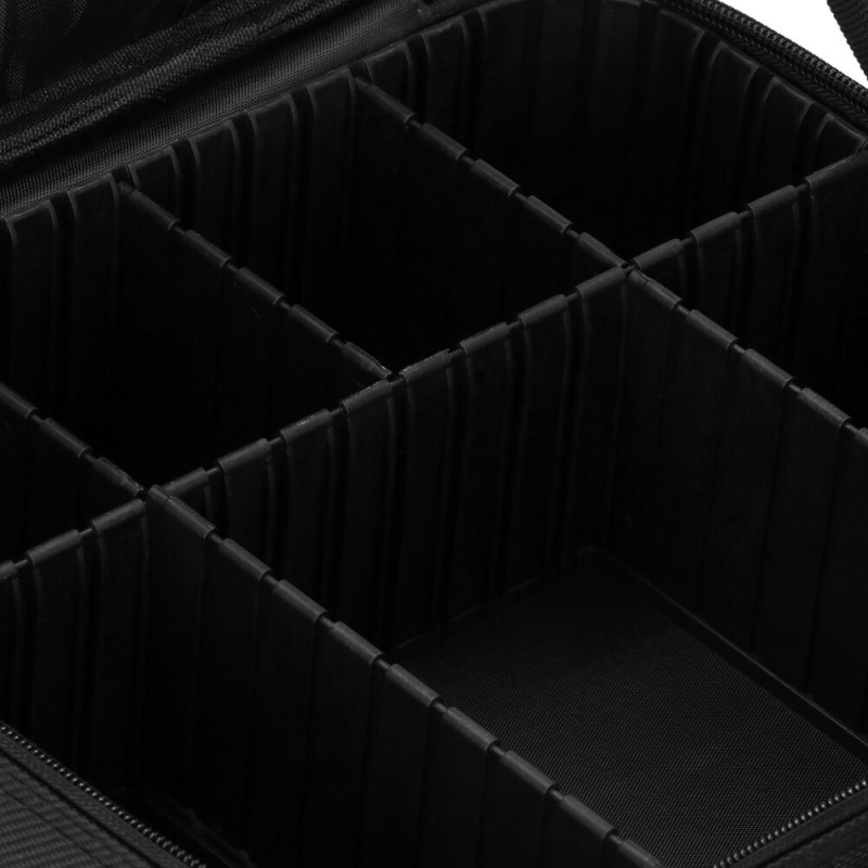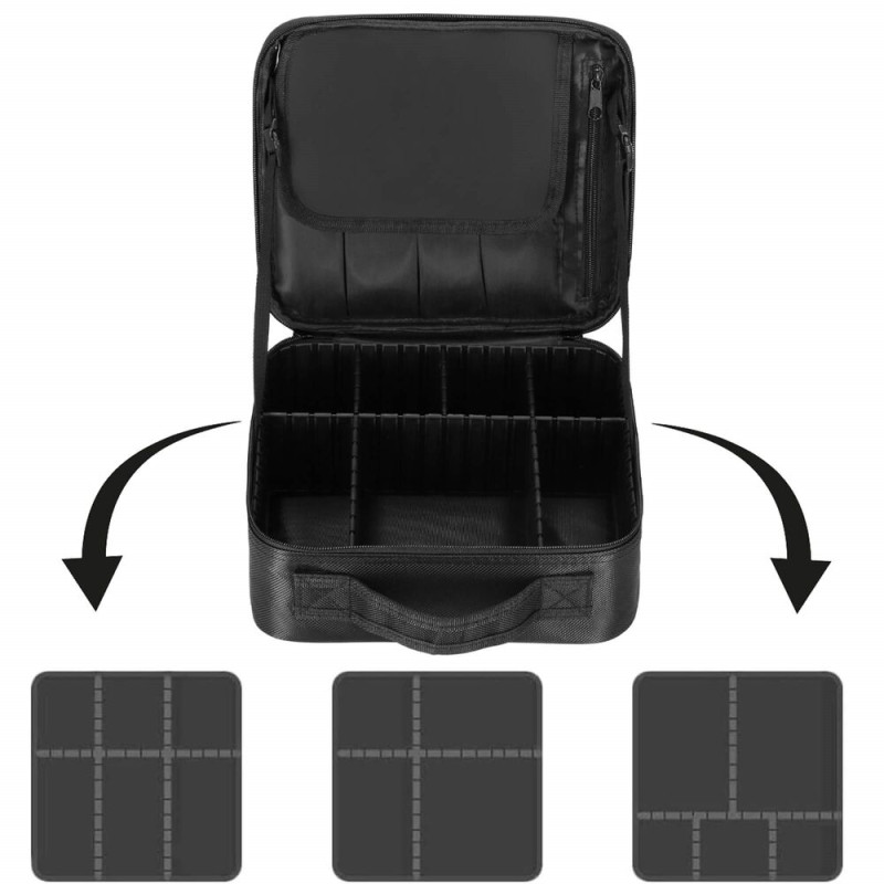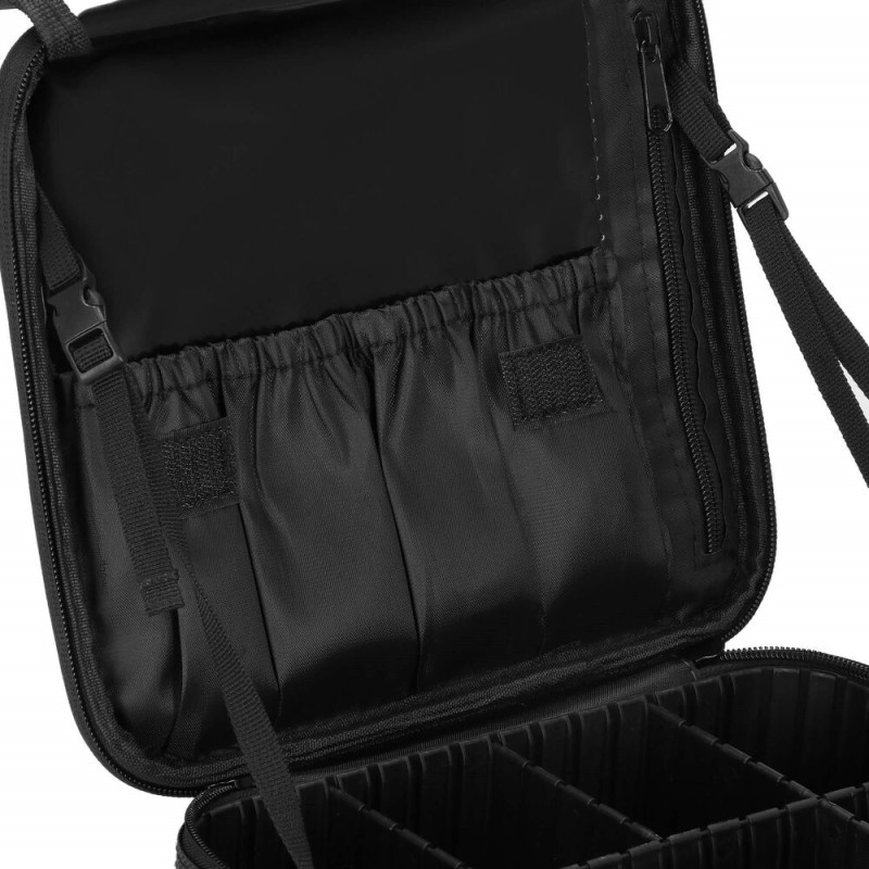 Cestovní kosmetická taška 26x23x10 cm SPRINGOS AURI černá je praktický a stylový doplněk, který pomáhá udržet všechny kosmetické potřeby dokonale uspořádané. Tento organizér na kosmetiku disponuje 1 prostornou hlavní kapsou na zip a 11 přihrádkami, díky nimž máte přehled o každém detailu. Přihrádky uvnitř organizéru si můžete přizpůsobit svým potřebám, protože jejich stěny lze díky speciálním výřezům libovolně přesouvat a sestavovat. Taška tak nabízí maximální variabilitu a přehlednost při balení.