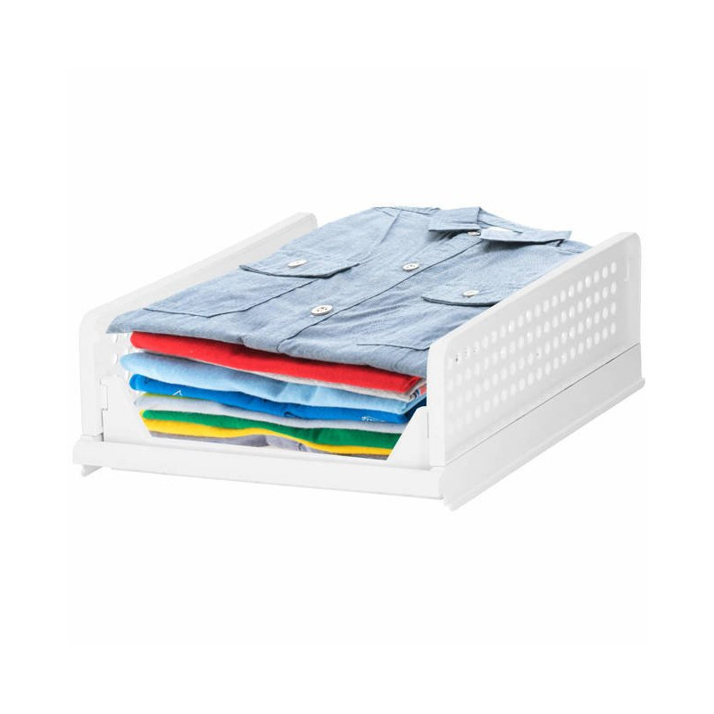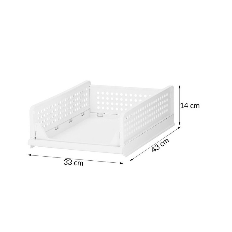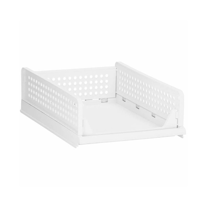 Univerzální organizér s možností skládání na sebe. Modulární systém pro vytvoření velkého úložného místa. Perfektní pro ložnice, dětské pokoje nebo koupelny. Sklopné boční stěny, možnost integrace do šatních skříní a regálových systému. Rozměry 33x43x14 cm (šxhxv).