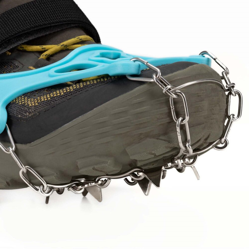 Kombinace odolné oceli a pružného silikonového TPE plastu zajišťuje dlouhou životnost a pohodlné nasazení na obuv. Návleky lze využít také jako nesmeky při každodenních procházkách v kluzkém terénu. Součástí balení jsou stabilizační popruhy pro velikost bot 40–45 a praktický obal, který usnadňuje přenášení a skladování.