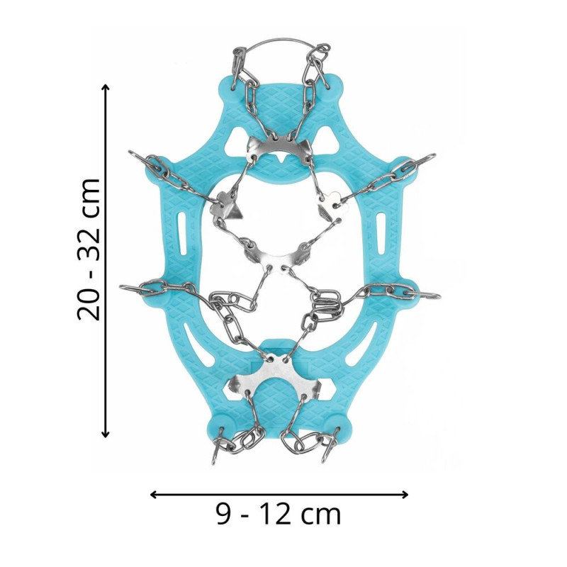 Protiskluzové návleky na boty zvyšují bezpečnost chůze na zledovatělých a extrémně kluzkých površích. Díky 16 ocelovým hrotům fungují podobně jako mačky a zajišťují lepší stabilitu v náročném terénu. V běžném zimním provozu se osvědčí také jako nesmeky při procházkách či výletech. Kombinace oceli a silikonového TPE zaručuje odolnost, součástí je obal a stabilizační popruhy pro boty velikosti 40–45.