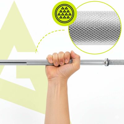 Tyč je navržena pro maximální nosnost až 160 kg, přičemž její vlastní hmotnost je 8,2 kg. Součástí jsou vylepšené objímky na uchycení závaží, které drží kotouče pevně na místě a zabraňují jejich posunu během cvičení. Díky kvalitní konstrukci a odolným materiálům je vhodná pro pravidelné používání. Nabízí ideální kombinaci pevnosti, bezpečnosti a komfortu, díky které můžete trénovat naplno a bez kompromisů.