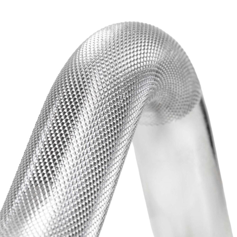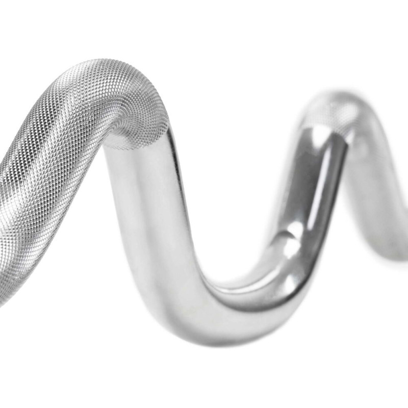 Silně lomená vzpěračská osa délky 120 cm, protiskluzové drážkované rukojeti pro jistý úchop, ergonomický tvar šetrný k zápěstím. Vylepšené objímky pro pevné uchycení závaží, maximální nosnost 140 kg, hmotnost 4,45 kg, průměr úchopu 25 mm. Vhodná pro domácí i profi trénink.