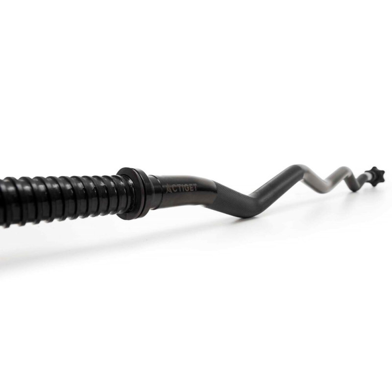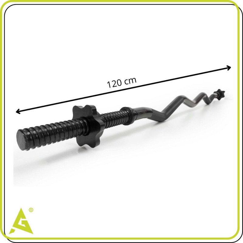 Vzpěračská tyč 120 cm EZ lomená osa 25 mm ACTIGET ACT0009 černá je navržena pro efektivní a komfortní silový trénink. Díky lomenému EZ tvaru umožňuje přirozenější polohu rukou a je tak šetrnější k zápěstím a loktům při cvicích jako bicepsové zdvihy, tricepsové tlaky nebo přítahy. Tyč má protiskluzové drážkované rukojeti, které zajišťují jistý úchop i při vyšší zátěži, a moderní černé provedení, které skvěle zapadne do každé posilovny.